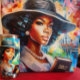 Une femme afro-américaine est prête pour le service religieux du dimanche matin. L'oeuvre sur ce sac a été créée avec de la peinture acrylique numérique.