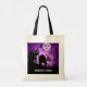 Un tour amusant ou un sac avec le nom de votre enfant, un chat noir dans un casquette de sorcière violette et une lune de rire pour une Halloween amusante.