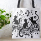Célébrez la symphonie parfaite du charme félin et de l'art musical avec le Sac fourre-tout des chats mélodiques ! Ce fourre-tout magnifiquement conçu présente un design fantaisiste de trois chats noirs jouant sur une équipe musicale tourbillonnante, entourée de notes musicales éparpillées et d'étoiles scintillantes. Le contraste noir et blanc saisissant fait de ce sac un accessoire de choix pour les amateurs de musique et de chat. Que ce soit pour un concert, un café ou tout simplement pour un moment, ce fourre-tout saura vous séduire !