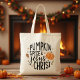 Ce sac fourre-tout charmant et branché d'automne s'inspire du style chrétien et présente le dicton "épice Citrouille & Jésus Christ" dans un script décoratif moderne avec des accents citrouille, feuille et coeur dans des couleurs chaudes de moisson d'automne.