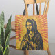 Emportez un style iconique partout où vous allez avec ce sac fourre-tout de dessin Virgen de Guadalupe! Doté d'une touche éclectique moderne sur une image classique, ce fourre-tout apporte des couleurs vives et un design audacieux à votre quotidien. Parfait pour tous ceux qui aiment mélanger la tradition avec un côté frais et artistique, ce sac est aussi attrayant que pratique. Faites-le votre accessoire de visite pour ajouter de la personnalité et de l'élégance à toute tenue!