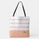 Tote Bag Élégant Moderne Gras Monogramme Rayures Pêche Tend