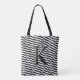 Tote Bag Élégant noir blanc Chevron Stripe Monogramme perso