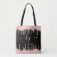Sylish, Girly, Elegant, Light Rose Gold Parties scintillant Drips 2 Monogram Script personnalisé nom monogrammed sac fourre-tout sur noir. Doté d'un cadre d'égouttement de parties scintillant d'or rose pâle moderne, d'une grande police de script monogramme à double main avec swashes (initiales de grande taille), et d'un nom de police de type serif en rose pâle sur arrière - plan noir. Facile à personnaliser. Grand cadeau féminin pour petite amie, mère, anniversaire, mariage, fête de 16 ans, douche nuptiale, baby shower, affaires, travail professionnel et pour toute personne qui aime des choses brillantes et glamour.