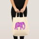Fourre-tout d'épicerie modelé dans un média mixte graphique numérique d'un éléphant dans un motif à tourbillon fractal dans des tons améthystes violets et doux d'orchidée et de violet