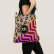 Monogramme Empreinte de léopard avec sac fourre-tout motif en décoratif arc-en-ciel en chevron de zigzag. Design dispose d'un moderne et tendance avant personnalisées initiales monogramme, dos rainbow zigzag chevron dégradé motif sur rouge foncé et arrière - plan bordeaux. C'est une belle fille tout occasionnel comme, anniversaire, le cadeau unique de la journée de la mère qui aime deux tonalités animal décoratif tacheté et arc-en-ciel dégradé chevron zigzag combinaison motif. Vous pouvez modifier le texte et la couleur ou le supprimer à l'aide d'outils de personnalisation.