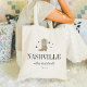 Accueillez vos amies pour votre week-end d'enterrement de vie de jeune fille avec ces adorables sacs cabas personnalisés. Le design présente une illustration de botte de cowboy marron avec votre destination en dessous (ici Nashville) dans une police sérif classique. Ajoutez votre/vos nom(s) ou le nom de l'occasion en dessous dans une police cursive manuscrite, ainsi que l'année.