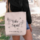 Sacs fourre-tout rose clair mignons et féminins pour votre enterrement de vie de jeune fille avec des croquis de filles de fête glamour se faisant bronzer dans des verres à cocktail martini, des étoiles scintillantes, "Babe Squad" dans un script rétro tendance et le lieu de la fête ou autre texte en lettrage simple et moderne.