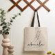 Sac fourre-tout grand-mère mignon avec un dessin d'un enfant tenant la main de leur grand-mère, le titre 'ABUELA' dans une police de script moderne, et l'année où elle est devenue une grammée.
