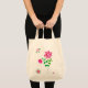 Un sac fourre-tout d'épicerie aux couleurs naturelles avec un joli design floral rose et vert d'un collage de papier peint à la main par Judy Adamson.