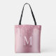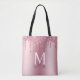 Dispose d'un sac fourre-tout de parties scintillant élégante à goutte rose ceinturé. Des étoiles brillantes de luxe donnent l'air de diamants brillants et de monogramme de script. Personnalisez-le avec votre nom ou vos initiales.