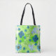 Un motif de fleurs bleues sur un arrière - plan vert citron.