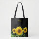 Fleurs de soleil sur le Sac fourre-tout noir. Texte seulement sur le côté avant.