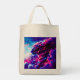 A powerful cosmic leopard emerging from vibrant clouds of neon pink, electric blue, and deep violet.