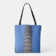 This captivating photograph showcases the iconic Leaning Tower of Pisa standing elegantly against a deep blue twilight sky in Pisa. The historic marble tower, famous for its unmistakable tilt, is beautifully illuminated, highlighting its intricate Romanesque arches and layered columns.