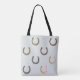 Profitez du charme équin partout où vous allez avec ce sac fourre-tout chic à motifs en fer à cheval. Conçu pour ajouter style et fonctionnalité à votre look quotidien, ce fourre-tout spacieux et durable est parfait pour tout, de l'épicerie aux jours de plage ou une sortie décontractée. Le design simple du fer à cheval n'apporte pas une touche unique et d'inspiration campagnarde à votre armoire. Le sac équestre à thème réutilisable fait un cadeau idéal pour les amateurs de chevaux.