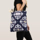 Fourre-tout pour des professeurs comportant une conception bleue d'ikat. Personnalisez le texte à l'intérieur du rectangle supérieur avec l'illustration rose de pomme.