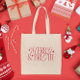 Sac fourre-tout à thème de Noël classique et vintage avec texte typographique qui dit "joyeux et lumineux" avec étoiles.