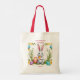Célébrez Pâques avec notre Sac fourre-tout Whimsical White Bunny Easter Egg. Cet adorable lapin, aux grandes oreilles roses, aux grands yeux bleus et au nez rose mignon, contient un oeuf de Pâques de couleur festive, entouré d'une couronne de fleurs vibrantes et de divers oeufs colorés. Personnalisez avec le nom de ce "Grand Chasseur"!