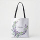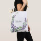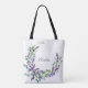 Arrière - plan blanc, décoré de fleurs de lavande et de verdure d'eucalyptus. Personnalisez et ajoutez votre nom. Lettres noires.