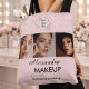 Sac de fidélité Makeup Studio - Police de script noir rose Blush Votre logo ici 3 Photo Entreprise de maquillage Sac de fidélité client avec nom et identifiant de réseau social.