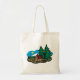 Une petite maison en bois dans les bois au milieu des arbres. Ce design semble vraiment efficace sur ce Sac fourre-tout