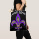 Ce sac fourre-tout coloré, utile, tout imprimé est modelé avec une grande fleur de Lis sur un arrière - plan noir. L'accessoire parfait pour Mardi Gras, Fêtes du Mardi gras. J'ai conçu des leggings et des Tee - shirts assortis.