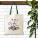 Joli design floral violet pour ces sacs fourre-tout de mariage personnalisés
