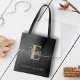 Tote Bag Moderne Élégant Noir Or Monogramme Nom du script