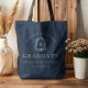 Tote Bag Monogram Crest Navy Blue White Graduation