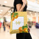 Tote Bag Monogramme agrumes oranges aquarelles points rusti