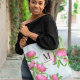Tote Bag Monogramme Fleurs roses Peonies personnalisées