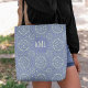 Un élégant sac fourre-tout de motif de mandala bleu floral avec un monogramme, un design design, tendance, initial, moderne, élégant, classique, bleu, vert, sur mesure