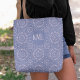 Un élégant sac fourre-tout de motif de mandala bleu floral avec un monogramme, un design personnalisé, élégant, tendance, initial, moderne, élégant, classique, rose et violet,
