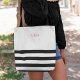 Personnalisez ce chic sac fourre-tout rayé noir et blanc avec votre trois monogramme initial en rose magenta contrasté pour un sac qui est le vôtre ! Fourre-tout blanc avec sangles noires dispose d'une bande de larges bandes noires à travers le fond, et votre monogramme en haut en lettrage serif classique. "Customisez-le" pour changer les polices et les couleurs pour votre propre design unique!