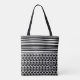 triangle rayé noir et blanc monogrammé double motif sur tout le sac fourre-tout d'impression