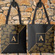 Cette conception comporte un motif squelette feuille doré sur la diagonale sur le noir et noir solide sur l'autre diagonale avec monogramme de lettre initiale personnalisé sur les deux côtés. L'arrière a l'envers de la conception avant. Personnalisez les lettres initiales de chaque côté, retirez le texte modèle ou customisez-le en sélectionnant une police différente où il est indiqué "Modifier à l'aide de l'outil de conception".
