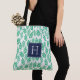 Tote Bag Motif Feuille vert et Monogramme bleu