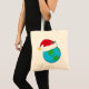 Un globe du monde avec un casquette de noël dessus. Ce design semble vraiment efficace sur ce Sac fourre-tout
