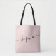 Sac fourre-tout chic rose et noir avec étiquette personnalisée blanche portant un nom ou tout autre texte pour les cadeaux de demoiselles d'honneur, les enterrements de vie de jeune fille, les faveurs d'anniversaire, les souvenirs de voyage entre filles et le cadeau de fin d'études pour un rangement élégant de la chambre universitaire et de la résidence. Parfait pour le stockage et le transport de matériel sportif et de loisirs. Les couleurs et les polices sont personnalisables, il suffit de cliquer sur « Personnaliser davantage » pour utiliser l'éditeur de modèle.