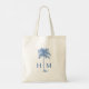 Ce sac fourre-tout moderne d'inspiration côtière dispose d'un palmier bleu avec un monogramme que vous pouvez personnaliser avec votre choix d'initiales de chaque côté.