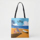 Tote Bag Plage Scène, Surfer, Chaise, orange & bleu