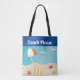 Plage fourre-tout claire et colorée avec le texte 'Plage Please'.