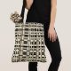 Ce sac fourre-tout a une touche moderne sur plaid en taupe, tan, noir et blanc.