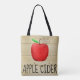 Joli tableau de pomme contre un arrière - plan en bois. Le texte dit "cidre d'Apple" dans une police rustique amusante.