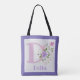 Tote Bag Premier nom initial plus Delia avec fleurs