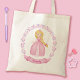Un mignon sac fourre-tout princesse rose avec une bordure fleurie. Personnalisez-le avec votre nom. Un plaisir de fête pour une fête d'anniversaire de princesse filles. Conçu pour vous par Blackberry Boulevard.