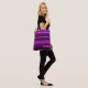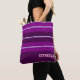 Shades of Purple from blackberry to pastel purple. Pastel purple strips complement the darker purple shades. Use this tote for shopping, work, or play.