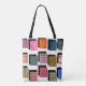 Ce sac fourre-tout a un design Bauhaus de rectangles avec des motifs à l'intérieur et leurs ombres derrière.
