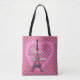 Fourre-tout élégant avec Tour Eiffel noir sur le coeur rose et partout les coeurs bleus sur l'arrière - plan rose lumineux. Texte "Paris, moi de C'est". Créé avec un sourire par des iolantesdesigns : -) !